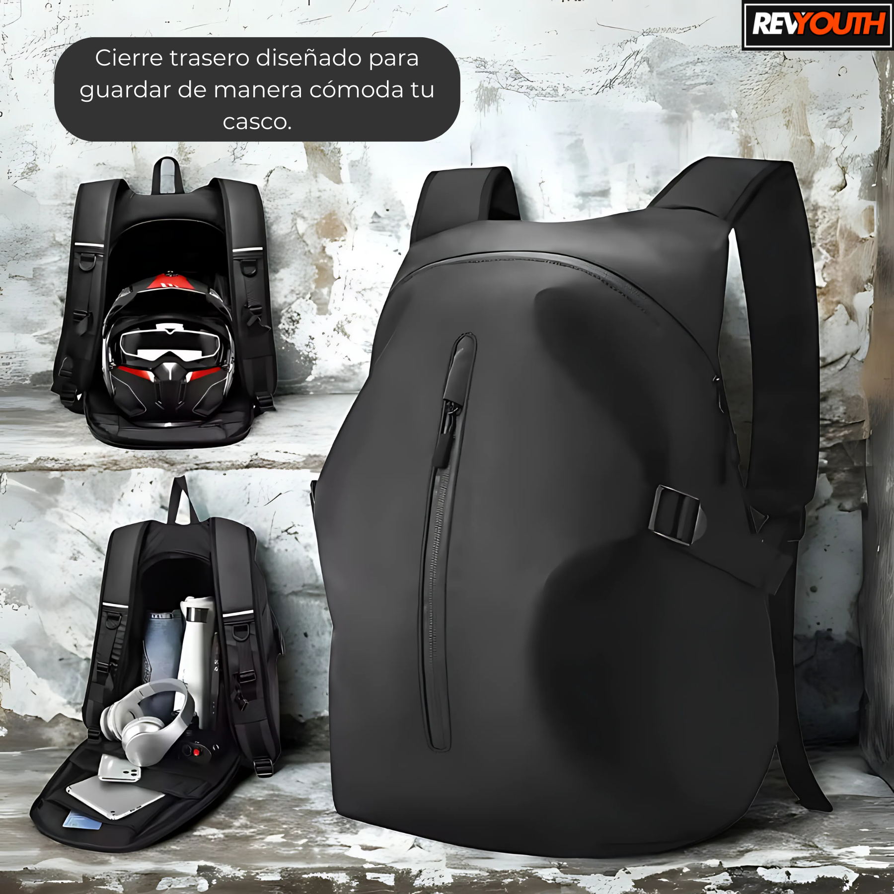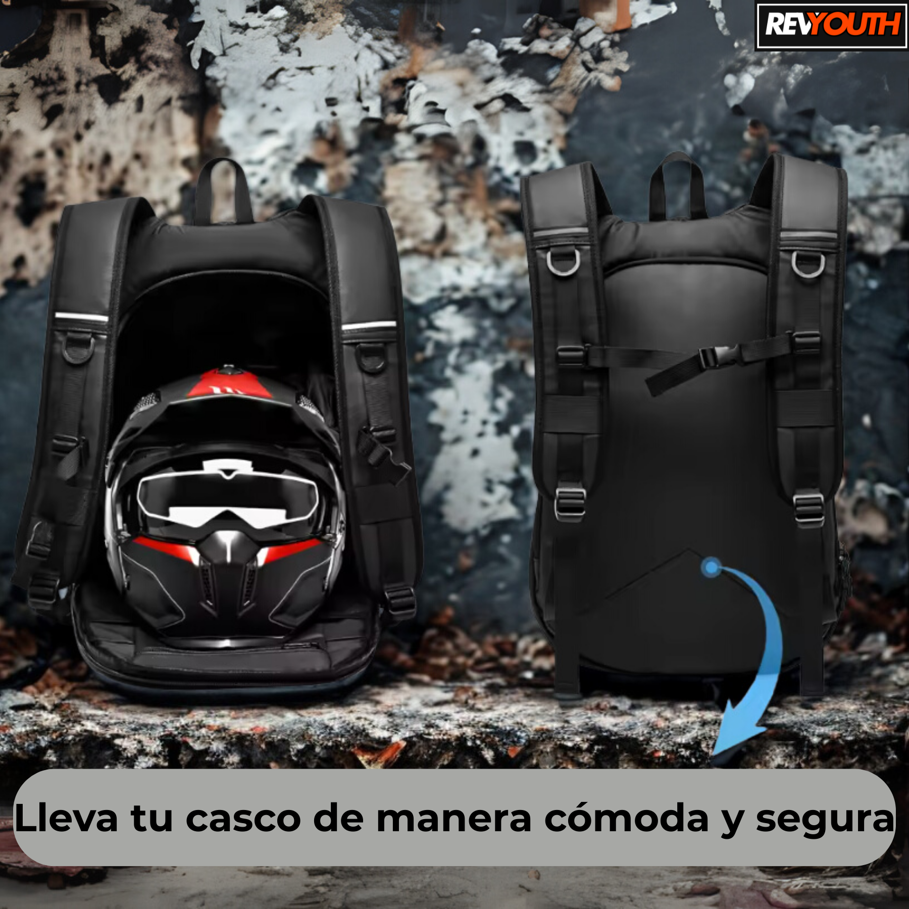 ¿Cansado de no tener dónde guardar tu casco o de llegar con tus cosas mojadas? Esta mochila está diseñada especialmente para motociclistas como tú: práctica, resistente y con un look deportivo que combina con tu moto.